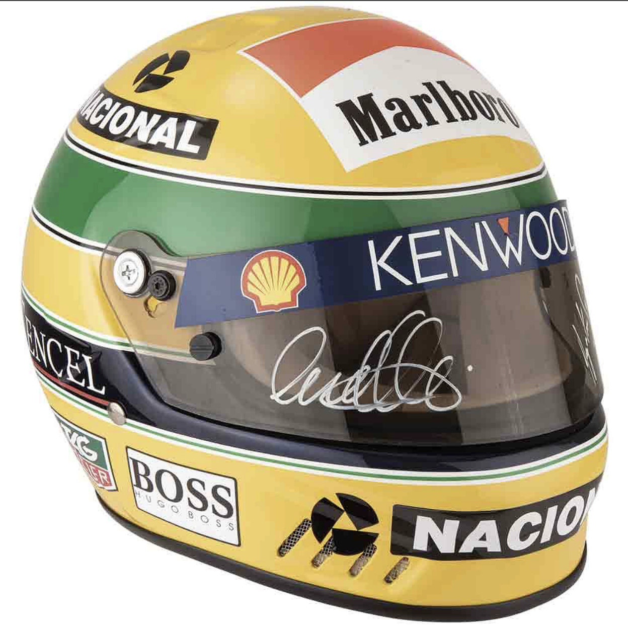 From a Marlboro McLaren F1 Team (1993) display helmet signed by Ayrton Senna at Silverstone 1993 and Michael Andretti, to a race-used BMW Sauber F1.08 front wing driven by Robert Kubica, each piece carries true competitive DNA.